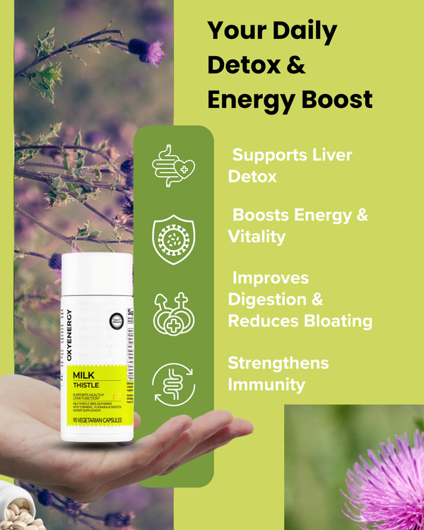 Revitalize your body’s detox engine with Milk Thistle’s powerhouse blend of nature’s protectors. Feel lighter, energized, and ready to conquer your day!